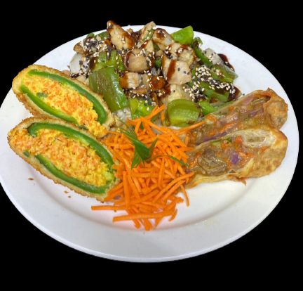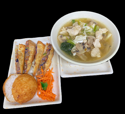 SOPA TORIZOZUI, ACOMPAÑADO DE 1 PZA DE SUSHI BOLA RELLENA DE CARNE Y 2 PZA DE ROLLO PRIMAVERA.