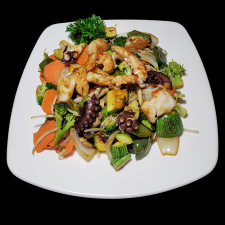 PULPO, LENGUADO, CAMARÓN, PASTA SOBA Y VERDURAS, MARINADA EN SALSA AGRIDULCE POLLO $165 CARNE $219 CAMARÓN $189 MIXTO $225