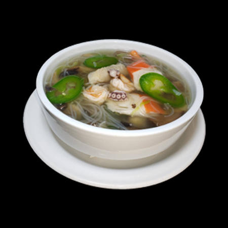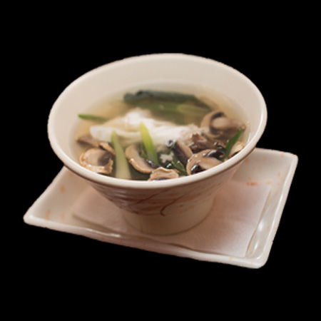 SOPA DE POLLO, CHAMPIÑONES, CLARA DE HUEVO, ESPINACA, CEBOLLIN Y ARROZ.